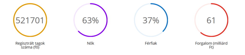Itthon jelenleg 521701 regisztrált taggal rendelkeznek a cégek. A nemek eloszlása 63% nő és 27% férfi. A legkeresettebb termékkategóriák a wellness termékek voltak 57%-al, amelyet a kozmetika és testápolás követ 20%-os aránnyal.