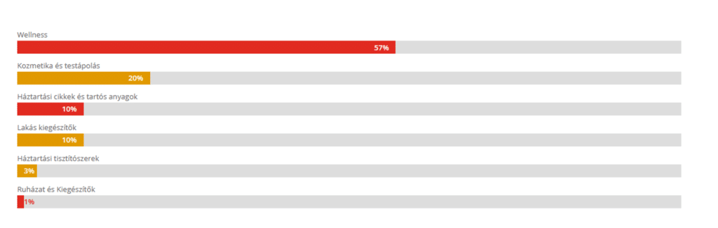 - A legtöbbet eladott termékek a Wellness kategóriába tartoznak: 36,2%