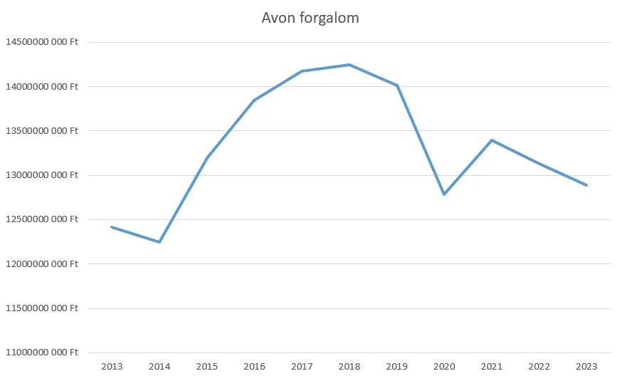 Az Avon / Natura & Co. forgalma 1,8%-al 12 millárd 889 millió forintra csökkent 2023-ban, az előző évi 13 milliárd 128 millió forinthoz képest.